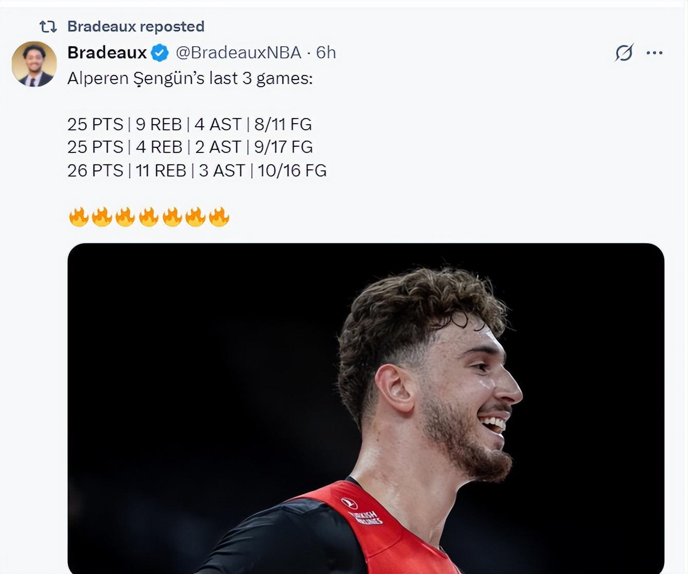 此前休媒晒出申京在25岁及以下土耳其球员中的各项数据排名(评语:他才23岁,他是名副其实的土耳其乔丹)