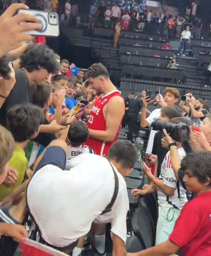 赛后土耳其球迷更是把申京围困在球馆内,申京是一个很暖心的球星他几乎是有求必应,有球迷找他合影他答应了,有球迷要签名他也答应了。值得一提的是现场有一位土耳其的女网红一直跟着申京拍,申京都没有表现的不耐烦,他无愧土耳其乔丹的称号。