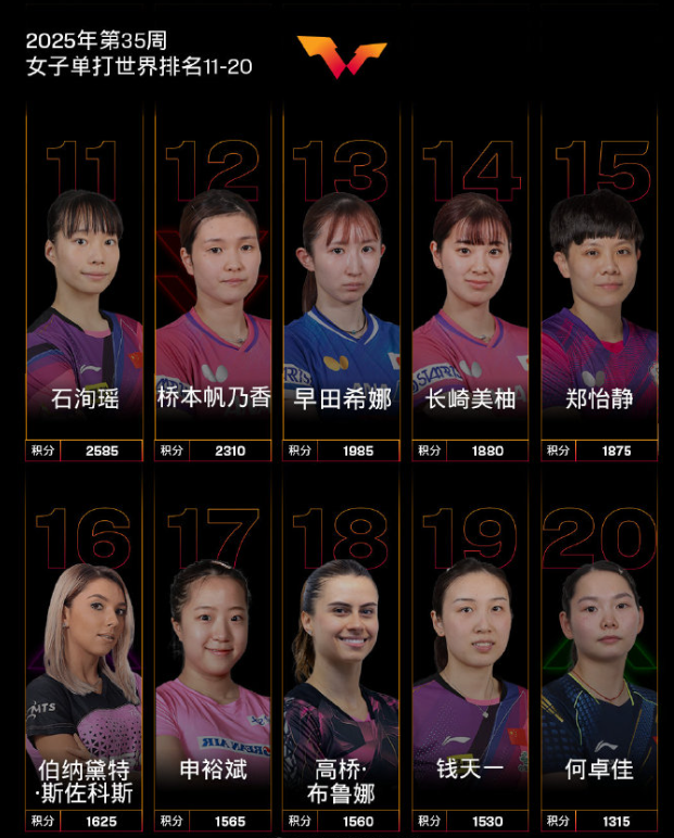 2025年第35周世界排名,石洵瑶已经升至第十一,比桥本帆乃香、早田希娜、长崎美柚、申裕斌、钱天一、何卓佳等人还要高。